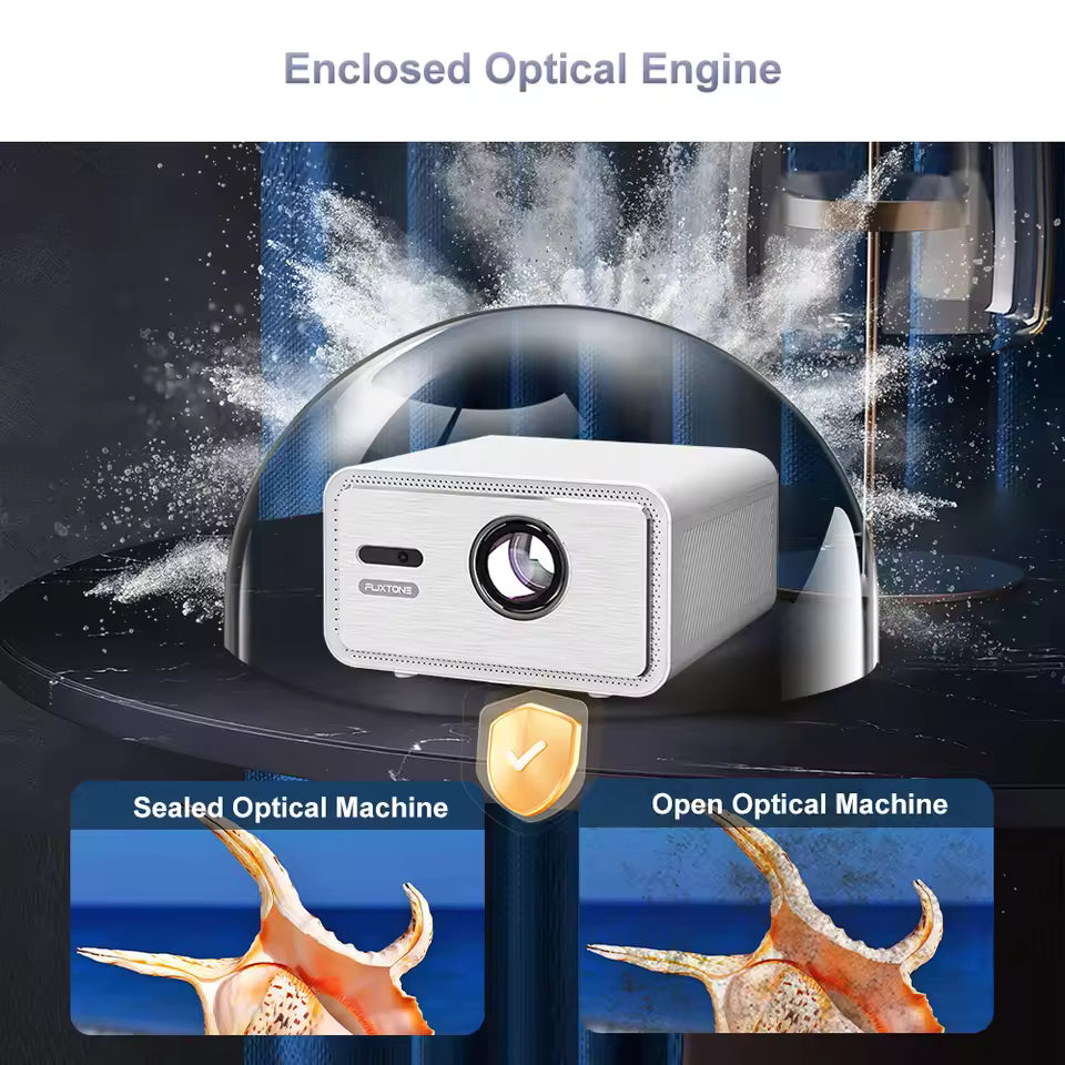 Experience high-end cinematic entertainment with the Flixtone D9W, a powerful and smart mini projector that combines 2500 ANSI lumens, native Full HD 1080P resolution, and 4K content support. With built-in Android TV, it's the perfect companion for watching films, series, sports, or presentations with quality, convenience, and style.
